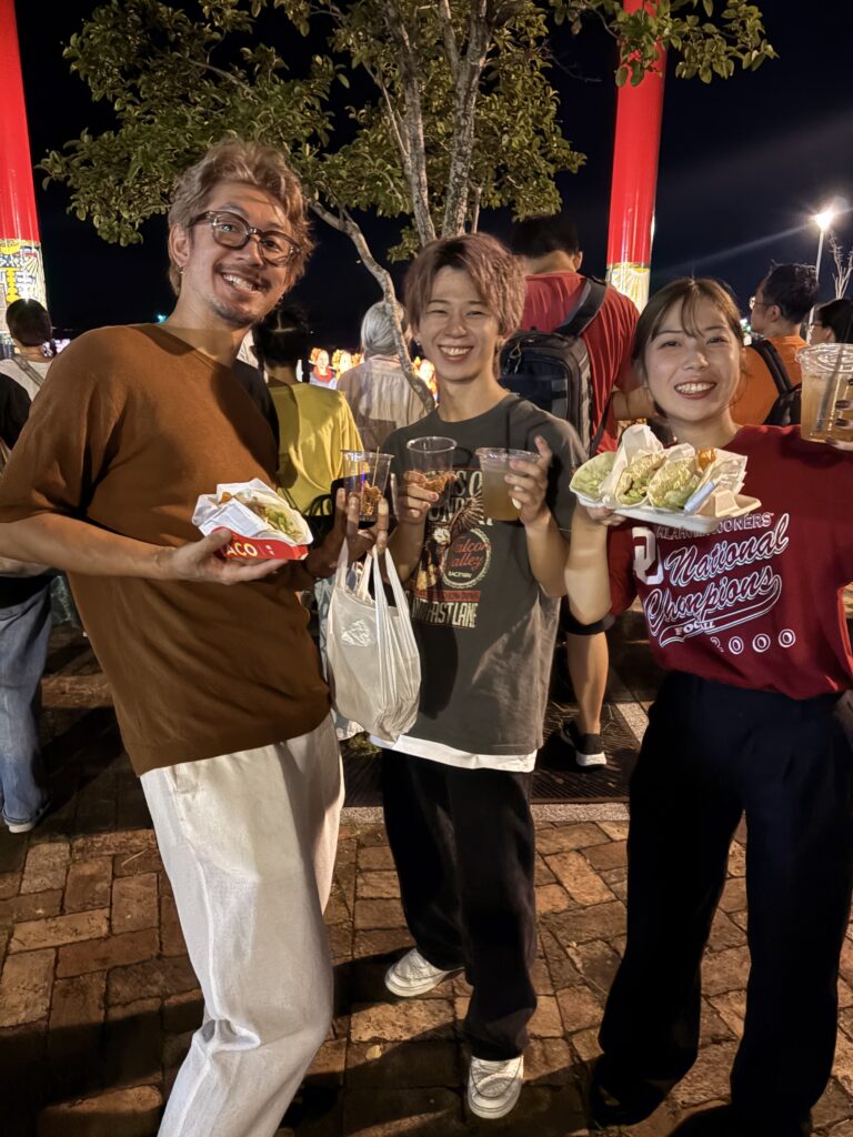 この日は少しだけお店を早く閉めて、色々な出店も出ていたので夜ご飯を求めて!